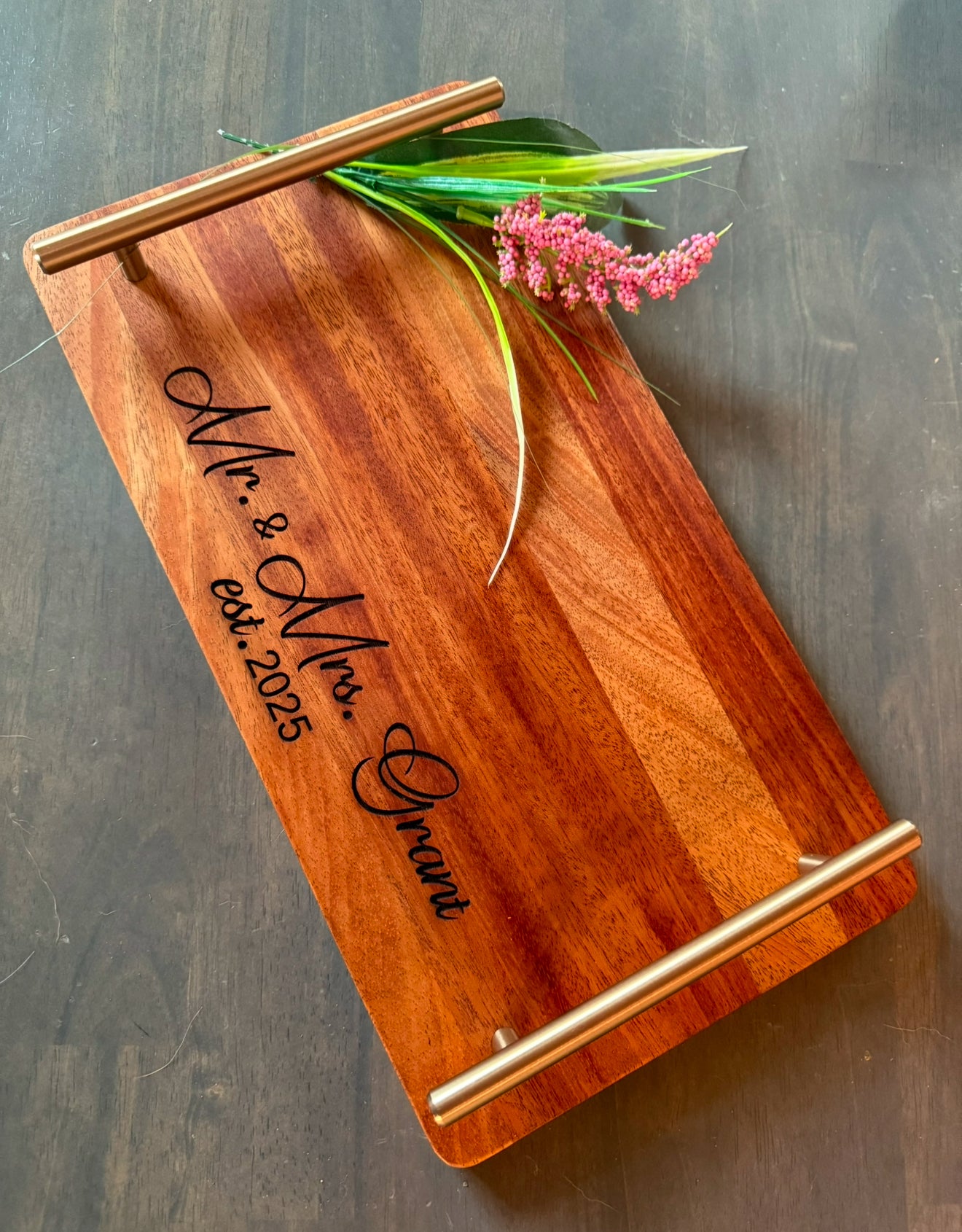 Each tray is individually engraved, ensuring a one-of-a-kind piece tailored to your specifications. Whether it' a family name, or a custom monogram, this tray adds warmth and charm to any space.