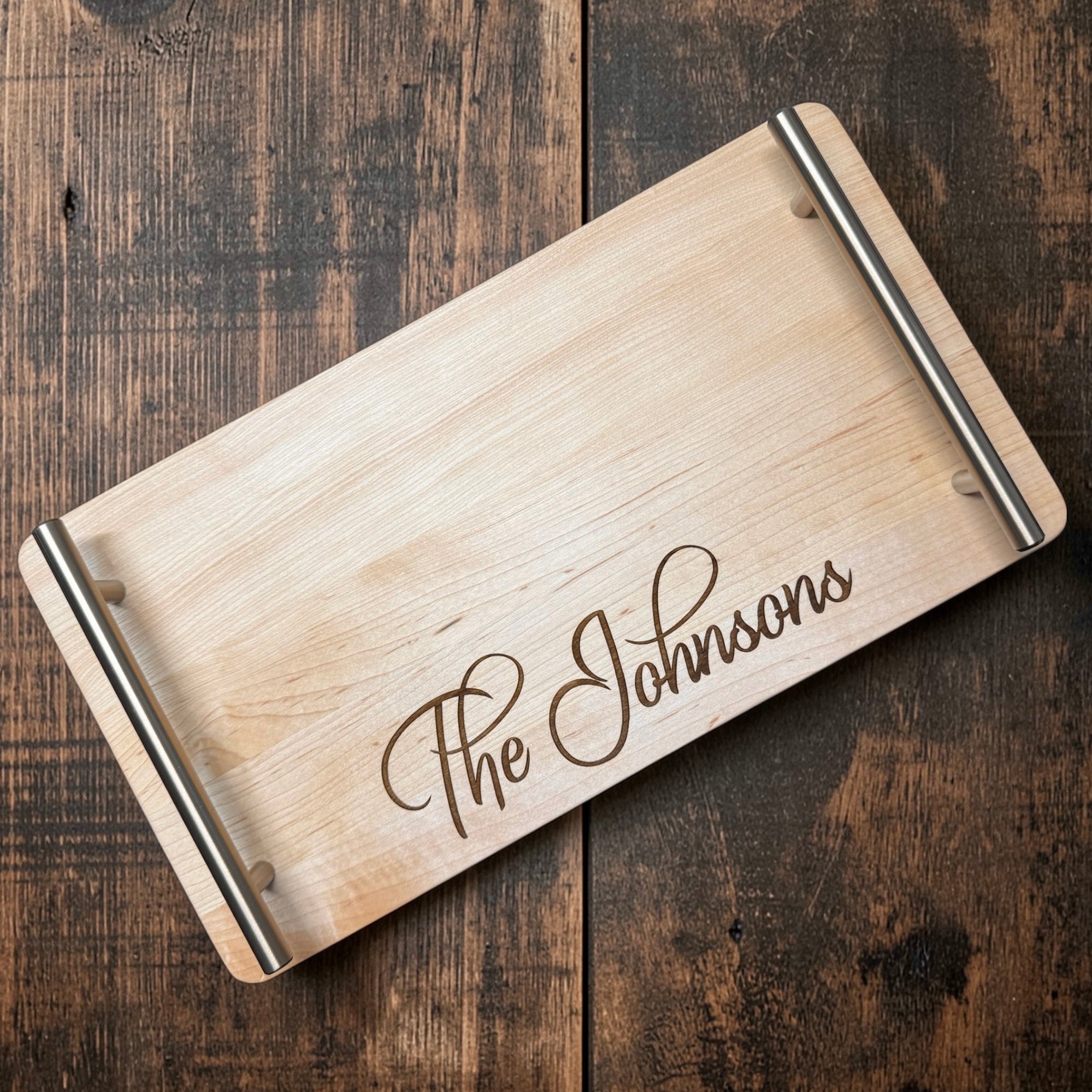 Elevate your home decor and entertaining with our Custom Handled Maple Tray, beautifully engraved to create a unique and personal touch. Crafted from premium maple wood, this elegant serving tray features sturdy handles for effortless carrying, making it both functional and stylish.