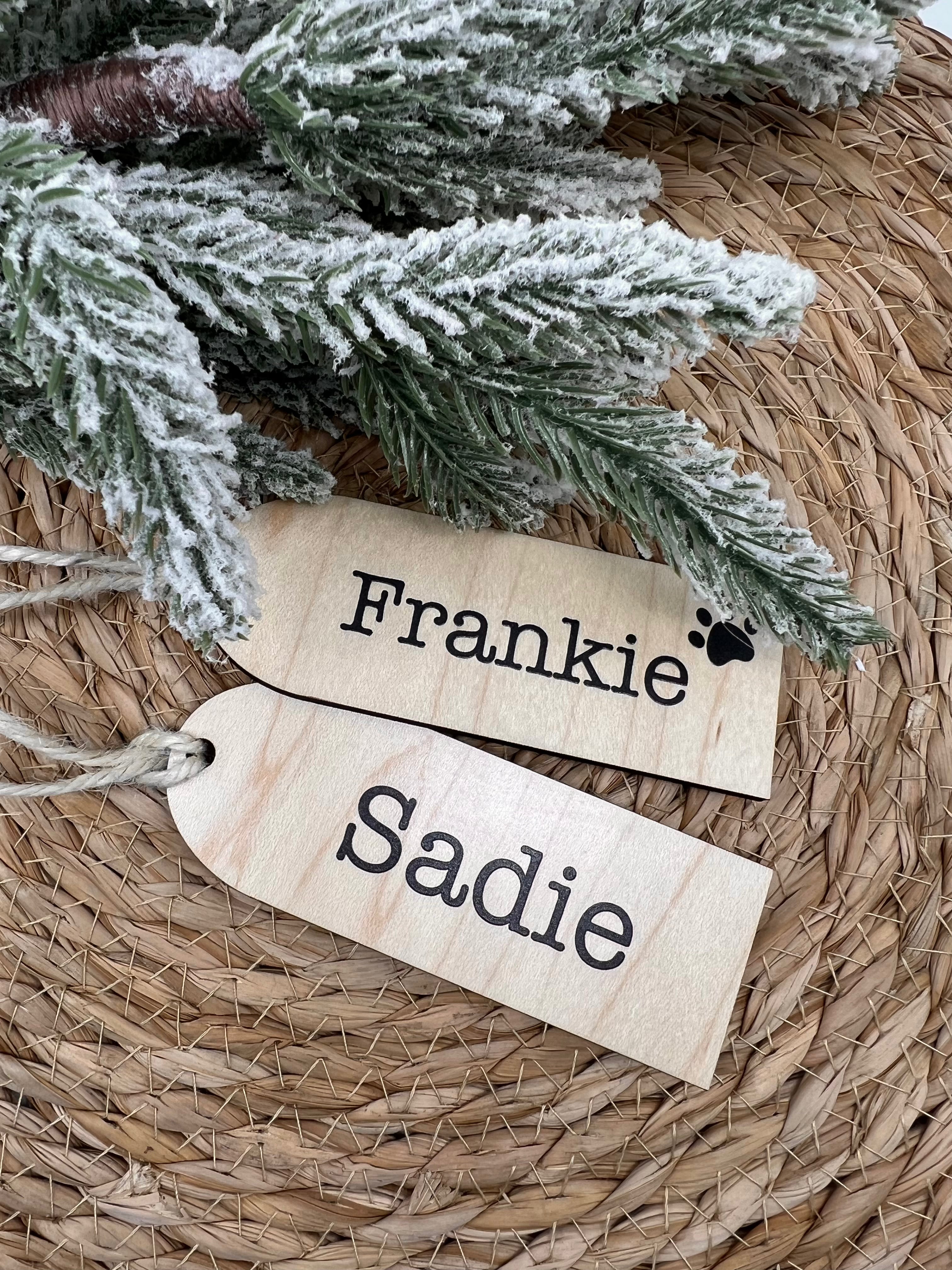 Enhance your holiday decor with our Elegant ad Modern Maple Wood Stocking Tags, crafted from beautifully finished maple wood for a warm, natural touch. These 1.5x5 inch tags are personalized with UV-printed names, creating a high-quality, lasting impression. Perfect for every family member—including pets!—these tags can feature a charming paw print beside pet names, adding an extra layer of personalization for furry friends. These tags make a lovely addition to your stockings, adding a rustic yet polished look that brings warmth and character to your holiday display.