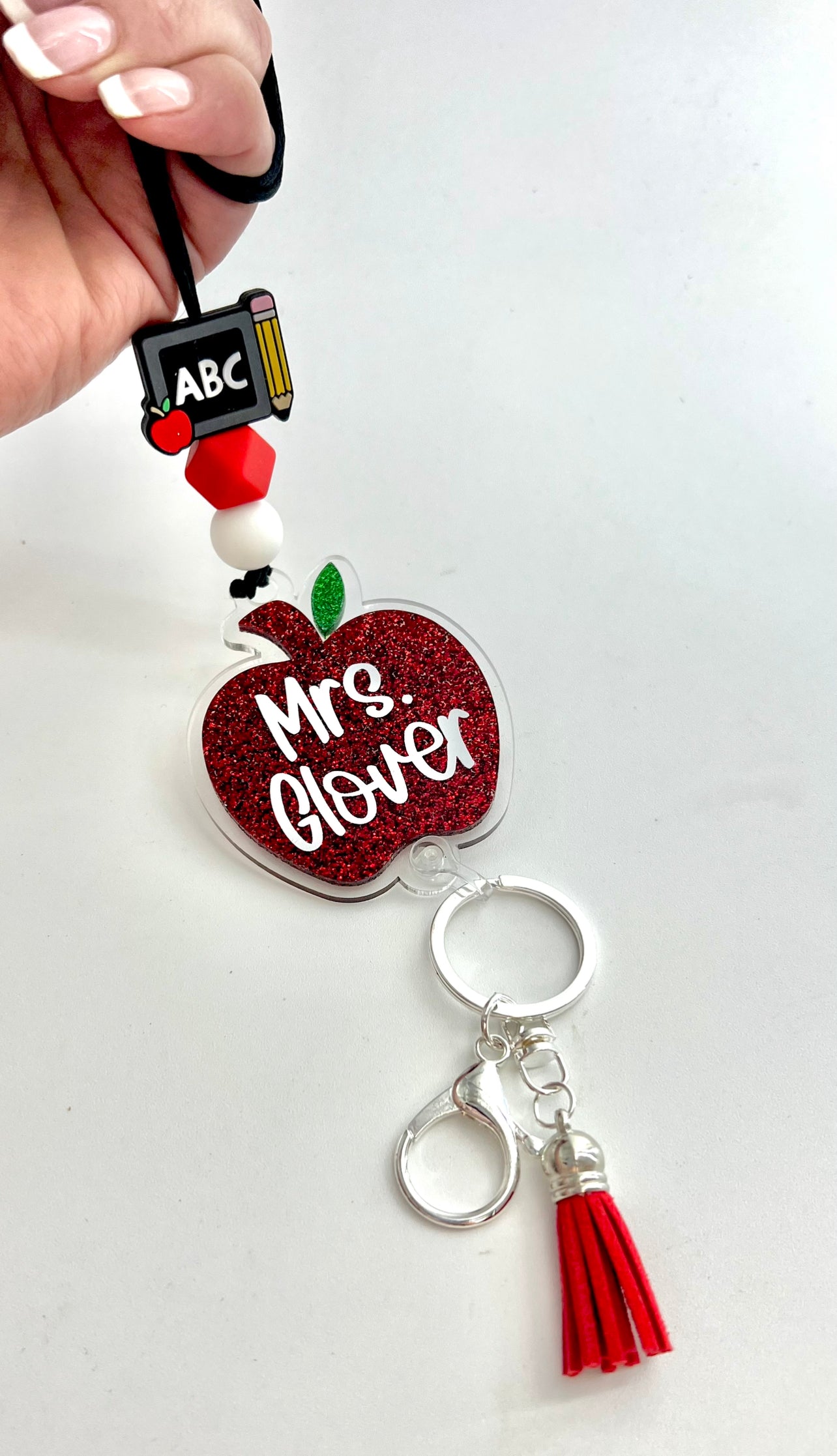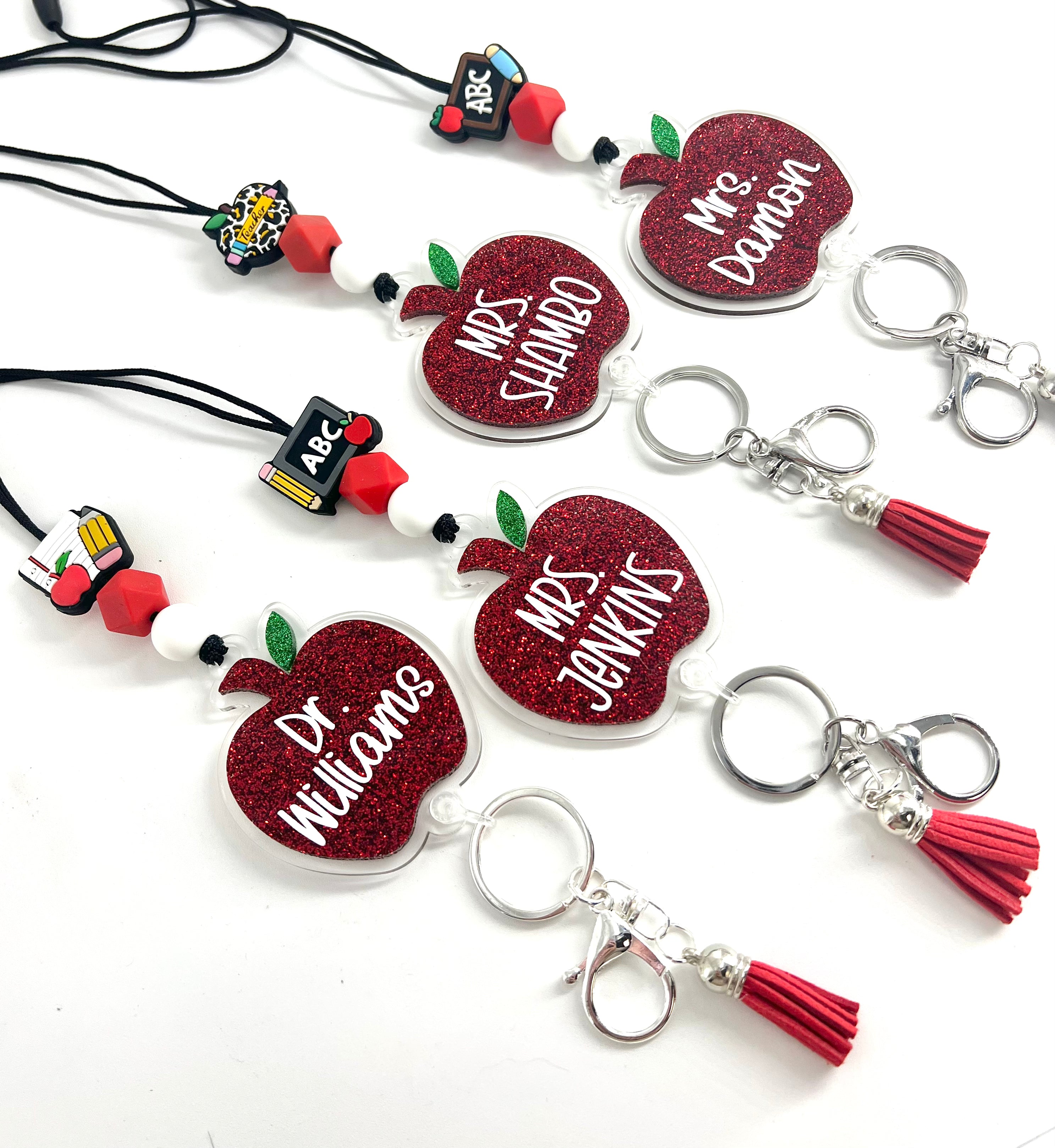 Jazz up your work wardrobe with our Glitter Apple Teacher Lanyard! Made of sparkling glitter acrylic, this lanyard is perfect for any teacher on the go. Keep your keys, ID, and badge close by while adding a touch of glam to your outfit.