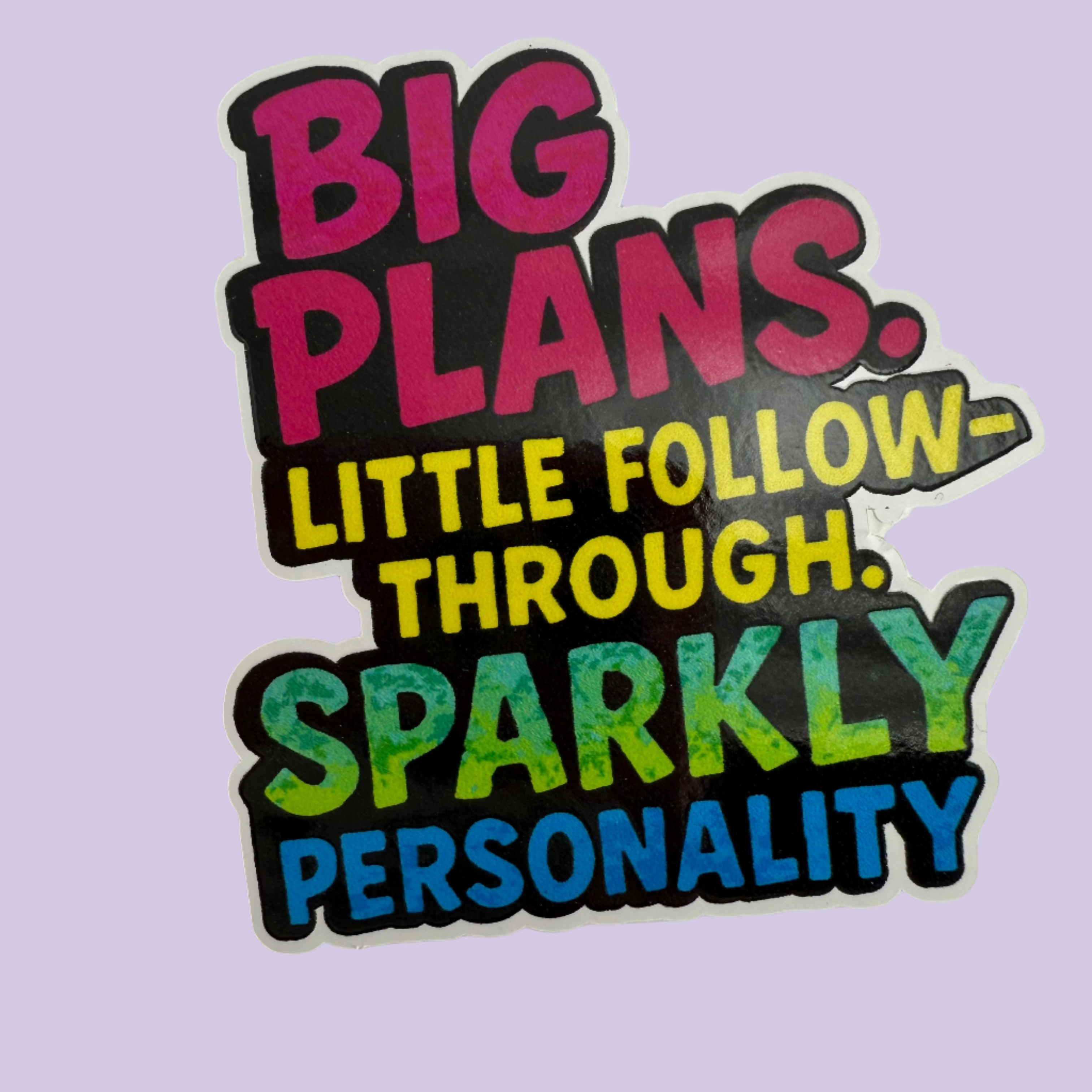 "Big Plans. Little Follow-Through. Sparkly Personality."